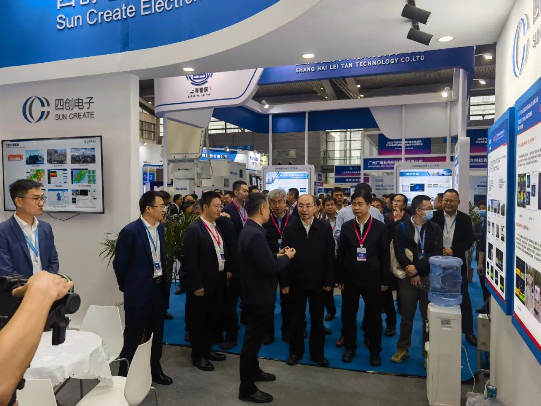 中國氣象局副局長畢寶貴等一行領導和專家蒞臨四創(chuàng)展臺指導工作,并對四創(chuàng)電子研制的氣象裝備及系統(tǒng)高度關注和贊揚。