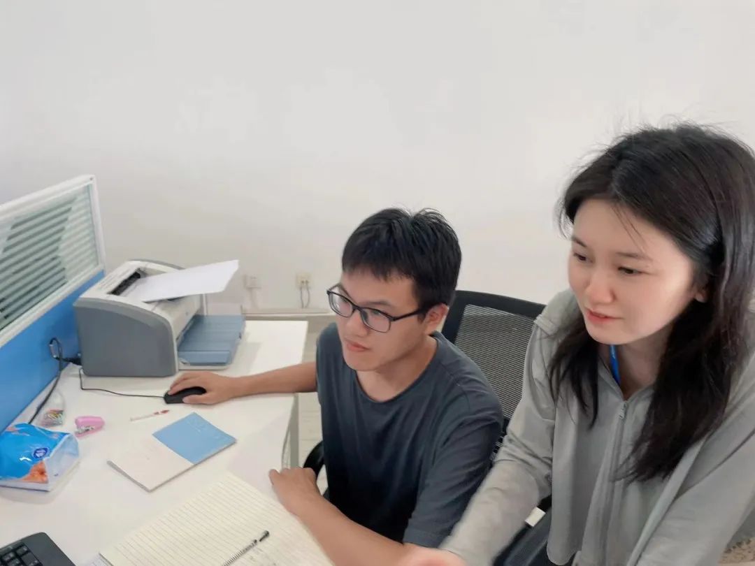 齊龍正在指導(dǎo)田旭三維可視化軟件研發(fā)工作。