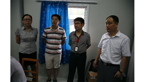 在平安合肥項(xiàng)目現(xiàn)場(chǎng)走訪慰問(wèn)時(shí),王曉龍書(shū)記代表公司領(lǐng)導(dǎo)班子向正在烈日下?lián)]汗如雨忙碌的同事表示了親切的慰問(wèn)和感謝,送上了防暑降溫用品。王書(shū)記詳細(xì)了解了平安合肥項(xiàng)目外場(chǎng)工作的進(jìn)展情況并親切詢問(wèn)了大家的作息時(shí)間和生活情況,對(duì)一線員工不畏酷暑,兢兢業(yè)業(yè),依然堅(jiān)守在一線的高度責(zé)任感和踏實(shí)肯干的工作精神給予了高度的贊賞,同時(shí)囑咐相關(guān)負(fù)責(zé)人要落實(shí)好防暑降溫工作,避開(kāi)高溫時(shí)段,錯(cuò)時(shí)施工,確保一線員工安全度暑和各項(xiàng)工作的有序開(kāi)展。
