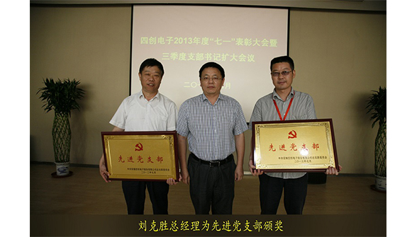 會議首先由綜合辦公室主任李思明宣讀了《關于表彰公司2012-2013年度先進黨支部、優(yōu)秀共產黨員的決定》,并舉行了簡短的頒獎儀式。劉克勝總經理為安防事業(yè)部、產品事業(yè)部聯(lián)合黨支部,華耀電子黨支部頒發(fā)了“先進黨支部”榮譽獎牌;王曉龍書記為陳少應、何世磊、張曉飛三位同志頒發(fā)了“優(yōu)秀共產黨員”獎杯及證書。劉克勝總經理向獲表彰的單位及個人表示祝賀,感謝他們?yōu)樗膭?chuàng)發(fā)展所做出的貢獻,號召全體黨員員工向先進學習,為公司發(fā)展做出更大成績。