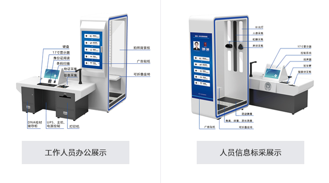 人員信息標(biāo)采平臺是一款高度集成、高度智能化的人員信息采集軟硬件一體設(shè)備,滿足公安、司法等辦案機(jī)關(guān)對違法犯罪人員的基本信息、人像(特征相)、二代身份證、指掌紋、身高體重足長、虹膜、聲紋、足跡、DNA、手機(jī)、隨身物品、銀行卡等采集要求,與警綜平臺等相關(guān)業(yè)務(wù)平臺關(guān)聯(lián)、對比、分析,實(shí)現(xiàn)采集單元一體化、數(shù)據(jù)采集業(yè)務(wù)流程化、數(shù)據(jù)質(zhì)量規(guī)范化。