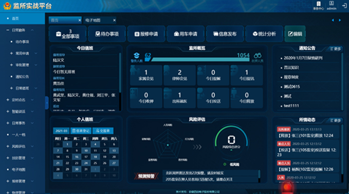 監(jiān)所實(shí)戰(zhàn)平臺以監(jiān)所實(shí)戰(zhàn)業(yè)務(wù)為導(dǎo)向,以物聯(lián)網(wǎng)、大數(shù)據(jù)為手段,升級、完善、整合安防系統(tǒng)和被監(jiān)管人員信息系統(tǒng),實(shí)現(xiàn)監(jiān)所技防管理、動(dòng)態(tài)信息主導(dǎo)勤務(wù)、風(fēng)險(xiǎn)評估、執(zhí)法監(jiān)督四大業(yè)務(wù)功能,旨在提高監(jiān)所風(fēng)險(xiǎn)預(yù)警和突發(fā)事件處置能力,是監(jiān)所實(shí)戰(zhàn)管理的“大腦中樞”。