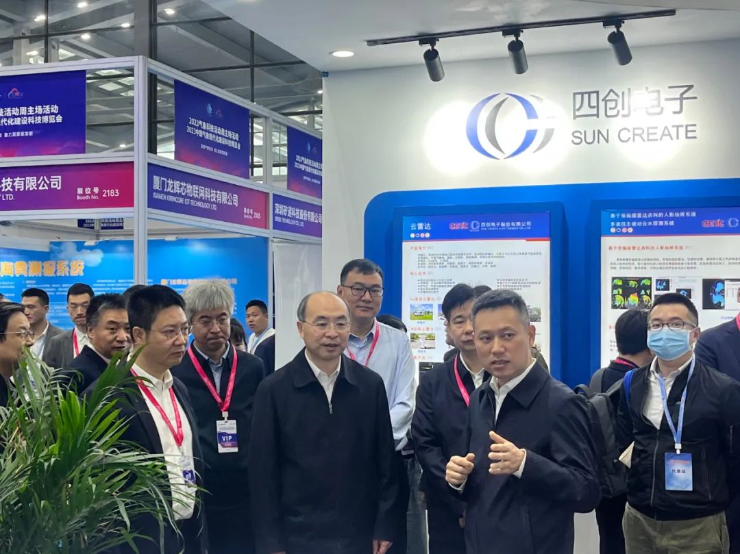 中國氣象局副局長畢寶貴等一行領導和專家蒞臨四創(chuàng)展臺指導工作,并對四創(chuàng)電子研制的氣象裝備及系統(tǒng)高度關注和贊揚。
