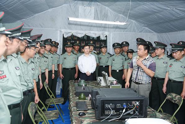 在公司展廳,王曉龍書記和沙雪松副總經理分別向來賓介紹了公司的發(fā)展歷程、主營業(yè)務和科研成果,并重點參觀了便攜式指揮所。參觀過程中,來賓一行認真聽取介紹,并不時與公司領導交流相關項目和產品在各自領域的應用狀況。