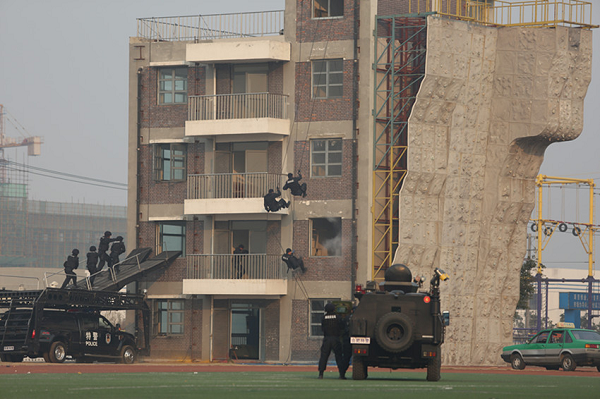 公司監(jiān)事會主席陳學(xué)軍、副總經(jīng)理陳仿杰、公司安全電子領(lǐng)域部分員工及合肥市社會各界群眾代表走進(jìn)市公安局特警支隊(duì)基地,觀摩了特警實(shí)戰(zhàn)科目匯報演練和特警裝備展,觀摩結(jié)束后,合肥市公安局與四創(chuàng)公司在內(nèi)的各企業(yè)負(fù)責(zé)人還進(jìn)行了專門座談。
