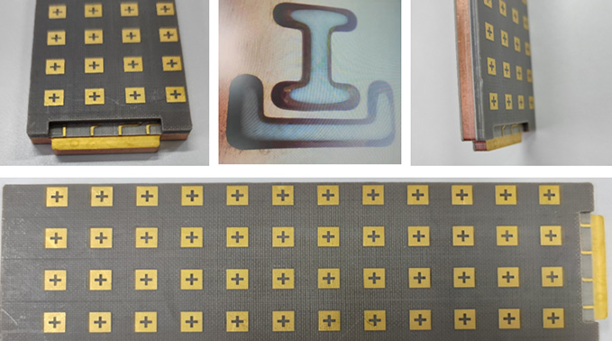 · 1+2mm超厚銅板壓合,銅板間導(dǎo)電膠粘接;