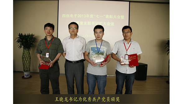 會議首先由綜合辦公室主任李思明宣讀了《關于表彰公司2012-2013年度先進黨支部、優(yōu)秀共產黨員的決定》,并舉行了簡短的頒獎儀式。劉克勝總經理為安防事業(yè)部、產品事業(yè)部聯(lián)合黨支部,華耀電子黨支部頒發(fā)了“先進黨支部”榮譽獎牌;王曉龍書記為陳少應、何世磊、張曉飛三位同志頒發(fā)了“優(yōu)秀共產黨員”獎杯及證書。劉克勝總經理向獲表彰的單位及個人表示祝賀,感謝他們?yōu)樗膭?chuàng)發(fā)展所做出的貢獻,號召全體黨員員工向先進學習,為公司發(fā)展做出更大成績。